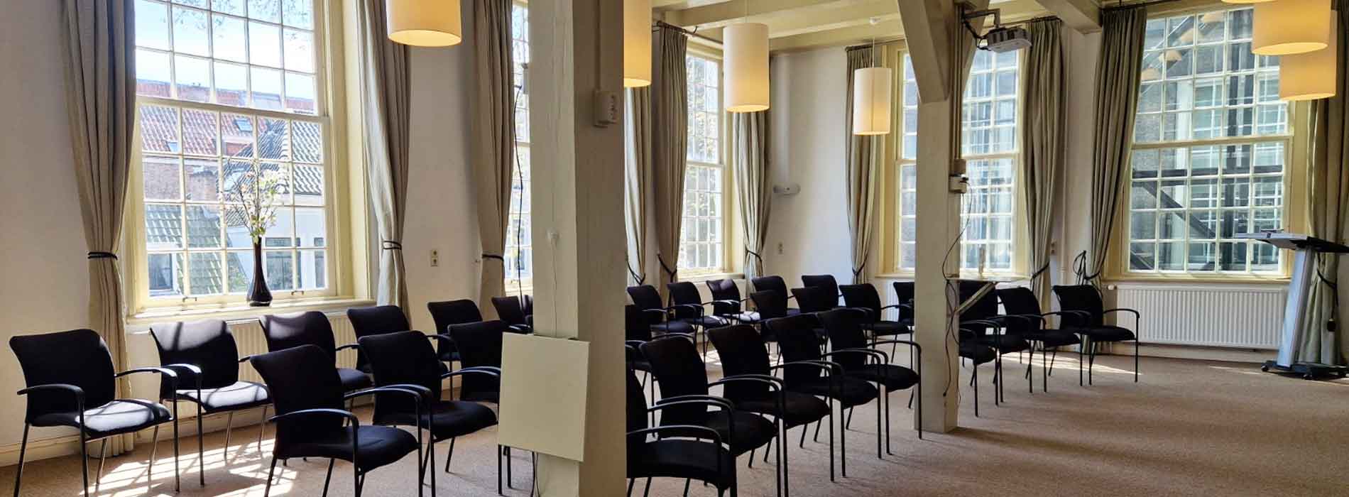 Altijd al willen vergaderen in een monumentale stadslocatie in het hartje van Delft? De bijzondere ruimtes van het voormalige meisjesweeshuis lenen zich uitstekend voor een zakelijke bijeenkomst, presentatie of vergadering. Kom in alle rust vergaderen en proef de sfeer. Er kan gekozen worden uit diverse zalen en vergaderruimtes. Elke zaal beschikt over snelle Wifi, beamer, scherm & flipover. Het pand is zeer goed te bereiken. Wij bieden twee standaard arrangementen aan, wilt u deze uitbreiden met een ontbijt- lunch diner en borrel? Dan maken wij uiteraard graag een offerte op maat voor u!